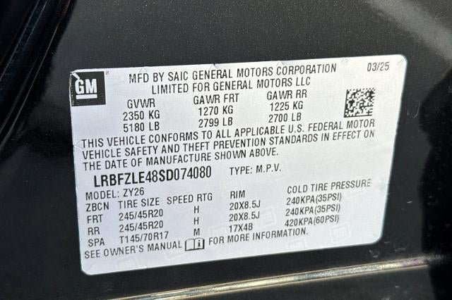 - Tires, P245/45R20 all-season