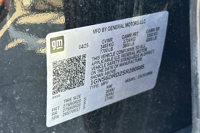 2025 Chevrolet Suburban Z71 4WD Black EcoTec3 5.3L V8 Suburban Z71, 4D Sport Utility, EcoTec3 5.3L V8, 4WD, Black, Jet Black w/Perforated Leather Seating Surfaces, 2-Speed Active Electronic AutoTrac Transfer Case, 2-Way Driver Power Lumbar Seat Adjuster, 2-Way Front Passenger Power Lumbar Seat Adjuster, 3.23 Rear Axle Ratio, 3rd row seats: split-bench, 4-Wheel Disc Brakes, 6 Speakers, 6-Speaker Audio System, 8-Way Power Driver Seat Adjuster, 8-Way Power Front Passenger Seat Adjuster, ABS brakes, Air Conditioning, Alloy wheels, AM/FM radio: SiriusXM with 360L, Apple CarPlay/Android Auto, Auto High-beam Headlights, Auto-Dimming Inside Rear-View Mirror, Auto-dimming Rear-View mirror, Automatic temperature control, Black Tubular Assist Steps, Brake assist, Bright Front and Rear Door Sill Plates, Bumpers: body-color, Compass, Delay-off headlights, Driver door bin, Driver vanity mirror, Dual Exhaust System, Dual front impact airbags, Dual front side impact airbags, Electronic Stability Control, Emergency communication system: OnStar Services capable, Exterior Parking Camera Rear, Four wheel independent suspension, Front anti-roll bar, Front Bucket Seats, Front Center Armrest, Front dual zone A/C, Front fog lights, Front High-Approach Angle Fascia, Front LED Fog Lamps, Front reading lights, Fully automatic headlights, Garage door transmitter, Heated door mirrors, Heated Driver and Front Passenger Seats, Heated front seats, Heavy-Duty Air Filter, Hill Descent Control, Illuminated entry, Leather-Appointed Seating, License Plate Front Mounting Package, Low tire pressure warning, Memory seat, Memory Settings For Driver, Navigation system: Google built-in compatibility (select service plan required, terms and limitations apply), Occupant sensing airbag, Outside temperature display, Overhead airbag, Overhead console, Panic alarm, Passenger door bin, Passenger vanity mirror, Power door mirrors, Power driver seat, Power Liftgate, Power passenger seat, Power steering, Power windows, Preferred Equipment Group 2Z7, Premium Smooth Ride Suspension, Radio data system, Radio: 17.7" Diagonal Advanced Color LCD Display, Rain sensing wipers, Rear air conditioning, Rear anti-roll bar, Rear Power Liftgate, Rear reading lights, Rear seat center armrest, Rear window defroster, Rear window wiper, Red Recovery Hooks, Remote keyless entry, Security system, SiriusXM with 360L Trial Subscription, Speed control, Speed-sensing steering, Split folding rear seat, Spoiler, Steering wheel mounted audio controls, Tachometer, Telescoping steering wheel, Tilt steering wheel, Traction control, Trip computer, Universal Home Remote, Variably intermittent wipers, Voltmeter, Wheels: 20" x 9" Bright Machined Aluminum, Wireless Apple CarPlay/Wireless Android Auto, Wireless Phone Charging, Z71 Exterior Features, Suburban Z71, 4D Sport Utility, EcoTec3 5.3L V8, 4WD, Black, Jet Black w/Perforated Leather Seating Surfaces, 2-Speed Active Electronic AutoTrac Transfer Case, 2-Way Driver Power Lumbar Seat Adjuster, 2-Way Front Passenger Power Lumbar Seat Adjuster, 3.23 Rear Axle Ratio, 3rd row seats: split-bench, 4-Wheel Disc Brakes, 6 Speakers, 6-Speaker Audio System, 8-Way Power Driver Seat Adjuster, 8-Way Power Front Passenger Seat Adjuster, ABS brakes, Air Conditioning, Alloy wheels, AM/FM radio: SiriusXM with 360L, Apple CarPlay/Android Auto, Auto High-beam Headlights, Auto-Dimming Inside Rear-View Mirror, Auto-dimming Rear-View mirror, Automatic temperature control, Black Tubular Assist Steps, Brake assist, Bright Front and Rear Door Sill Plates, Bumpers: body-color, Compass, Delay-off headlights, Driver door bin, Driver vanity mirror, Dual Exhaust System, Dual front impact airbags, Dual front side impact airbags, Electronic Stability Control, Emergency communication system: OnStar Services capable, Exterior Parking Camera Rear, Four wheel independent suspension, Front anti-roll bar, Front Bucket Seats, Front Center Armrest, Front dual zone A/C, Front fog lights, Front High-Ap