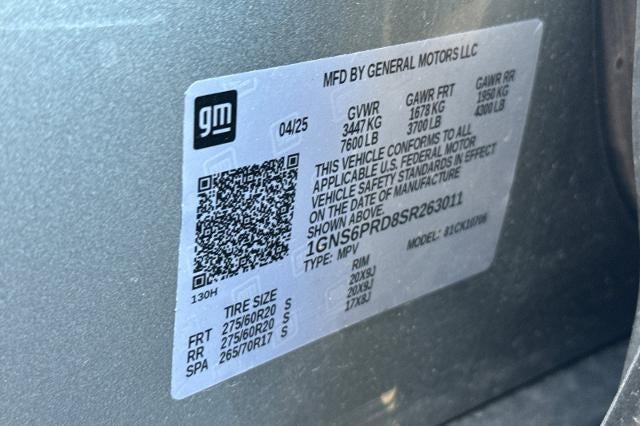 2025 Chevrolet Tahoe Z71 4WD Sterling Gray Metallic EcoTec3 5.3L V8 Tahoe Z71, 4D Sport Utility, EcoTec3 5.3L V8, 4WD, Sterling Gray Metallic, Jet Black w/Perforated Leather Seat Trim, 1st and 2nd Row Color-Keyed Carpeted Floor Mats, 2-Speed Active Electronic AutoTrac Transfer Case, 2-Way Power Driver Lumbar Seat Adjuster, 2-Way Power Front Passenger Lumbar Seat Adjuster, 3-Spoke Wrapped Steering Wheel, 3.23 Rear Axle Ratio, 3rd Row Manual 60/40 Split-Folding Bench Seats, 3rd row seats: split-bench, 4-Wheel Disc Brakes, 6 Speakers, 6-Speaker Audio System Feature, 8-Way Power Driver Seat Adjuster, 8-Way Power Front Passenger Seat Adjuster, ABS brakes, Air Conditioning, Alloy wheels, AM/FM radio: SiriusXM with 360L, Apple CarPlay/Android Auto, Auto High-beam Headlights, Auto-Dimming Inside Rear-View Mirror, Auto-dimming Rear-View mirror, Automatic temperature control, Black Tubular Assist Steps, Brake assist, Bright Front and Rear Door Sill Plates, Bumpers: body-color, Color-Keyed Carpeting Floor Covering, Compass, Delay-off headlights, Driver door bin, Driver vanity mirror, Dual Exhaust System, Dual front impact airbags, Dual front side impact airbags, Electronic Stability Control, Emergency communication system: OnStar and Chevrolet connected services capable, Exterior Parking Camera Rear, Floor Console with Storage Area, Four wheel independent suspension, Front anti-roll bar, Front Bucket Seats, Front Center Armrest, Front dual zone A/C, Front fog lights, Front High-Approach Angle Fascia, Front LED Fog Lamps, Front Pedestrian and Bicyclist Braking, Front reading lights, Frontal Driver and Outboard Passenger Airbags, Fully automatic headlights, Garage door transmitter, Heated door mirrors, Heated Driver and Front Passenger Seats, Heated front seats, Hill Descent Control, Illuminated entry, Leather-Appointed Seat Trim, License Plate Front Mounting Package, Low tire pressure warning, Memory seat, Memory Settings For Driver, Navigation system: Google built-in compatibility (select service plan required, terms and limitations apply), Occupant sensing airbag, Outside temperature display, Overhead airbag, Overhead console, Panic alarm, Passenger door bin, Passenger vanity mirror, Power door mirrors, Power driver seat, Power Liftgate, Power passenger seat, Power steering, Power windows, Preferred Equipment Group 2Z7, Premium audio system: Chevrolet Infotainment 3 Premium, Premium Smooth Ride Suspension, Radio data system, Radio: 17.7" Diagonal Advanced Color LCD Display, Rain sensing wipers, Rear air conditioning, Rear anti-roll bar, Rear Power Liftgate, Rear reading lights, Rear seat center armrest, Rear window defroster, Rear window wiper, Red Horizontal-Mounted Recovery Hooks, Remote keyless entry, Remote Start, Security system, SiriusXM with 360L Trial Subscription, Speed control, Speed-sensing steering, Split folding rear seat, Spoiler, Steering wheel mounted audio controls, Tachometer, Telescoping steering wheel, Tilt steering wheel, Traction control, Trip computer, Universal Home Remote, USB Ports, Variably intermittent wipers, Voltmeter, Wheels: 20" x 9" Bright Machined Aluminum, Wireless Phone Charging, Z71 Exterior Features, Tahoe Z71, 4D Sport Utility, EcoTec3 5.3L V8, 4WD, Sterling Gray Metallic, Jet Black w/Perforated Leather Seat Trim, 1st and 2nd Row Color-Keyed Carpeted Floor Mats, 2-Speed Active Electronic AutoTrac Transfer Case, 2-Way Power Driver Lumbar Seat Adjuster, 2-Way Power Front Passenger Lumbar Seat Adjuster, 3-Spoke Wrapped Steering Wheel, 3.23 Rear Axle Ratio, 3rd Row Manual 60/40 Split-Folding Bench Seats, 3rd row seats: split-bench, 4-Wheel Disc Brakes, 6 Speakers, 6-Speaker Audio System Feature, 8-Way Power Driver Seat Adjuster, 8-Way Power Front Passenger Seat Adjuster, ABS brakes, Air Conditioning, Alloy wheels, AM/FM radio: SiriusXM with 360L, Apple CarPlay/Android Auto, Auto High-beam Headlights, Auto-Dimming Inside Rear-View Mirror, Auto-dimming Rear-View mirror, Automatic temperature control, Bla